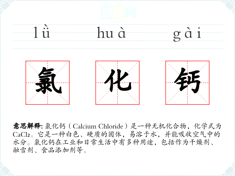 "氯化钙"的意思解释、氯化钙是什么意思由翻译网汉语词典查词提供。
