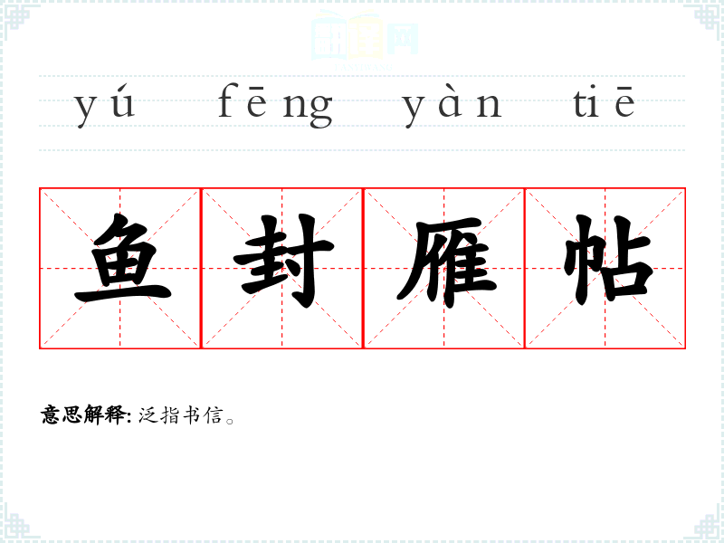 "鱼封雁帖"的意思解释、鱼封雁帖是什么意思由翻译网汉语词典查词提供。
