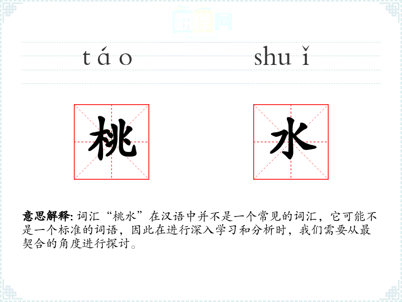 由于“桃水”不是一个标准词汇,我们可以尝试从字面意思来解释: