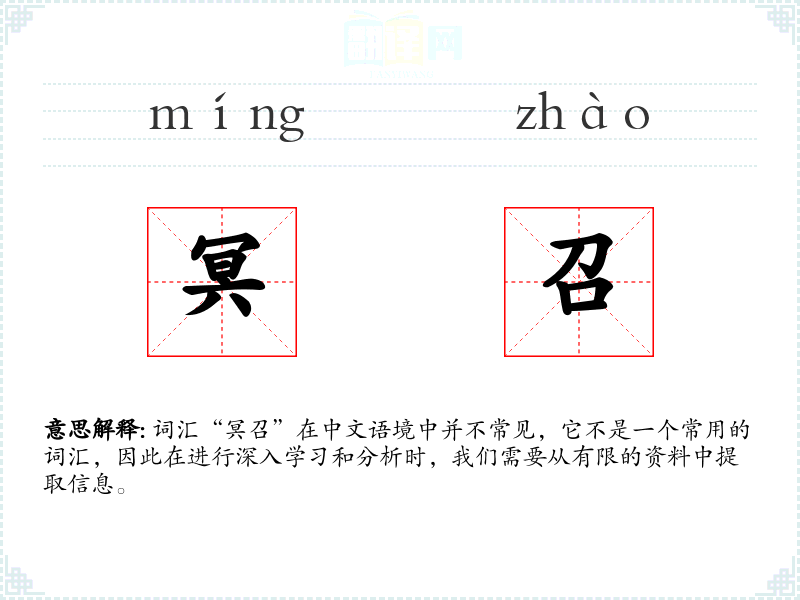 词汇“冥召”在中文语境中并不常见,它不是一个常用的词汇,因此在进行深入学*和分析时,我们需要从有限的资料中提取信息。