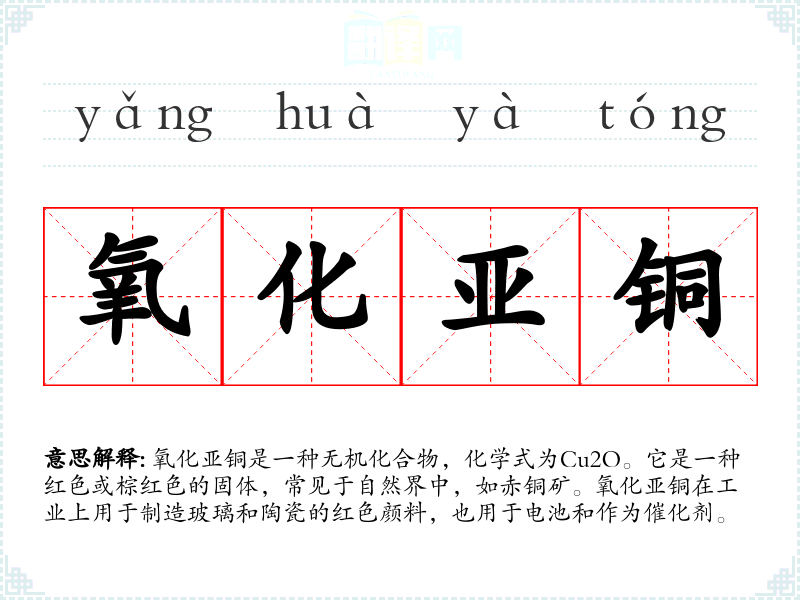 "氧化亚铜"的意思解释、氧化亚铜是什么意思由翻译网汉语词典查词提供。