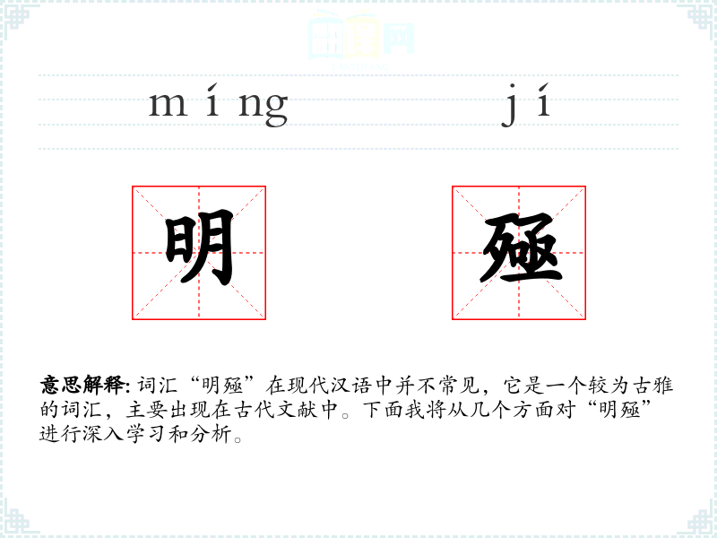 “明殛”的词源可以追溯到古代汉语,其中“明”和“殛”都是古代常用的词汇。随着时间的推移,“明殛”这个组合词汇在现代汉语中逐渐被淘汰,被更为通俗的表达方式所取代。