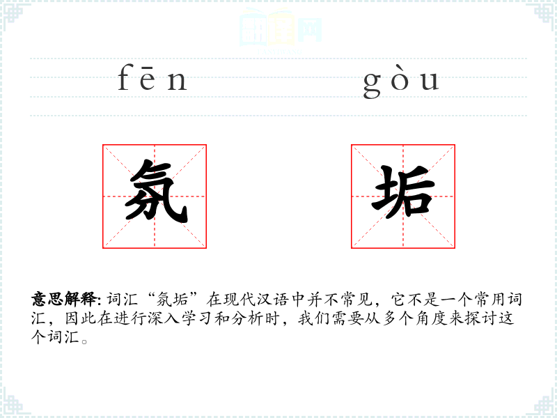 词汇“氛垢”在现代汉语中并不常见,它不是一个常用词汇,因此在进行深入学习和分析时,我们需要从多个角度来探讨这个词汇。