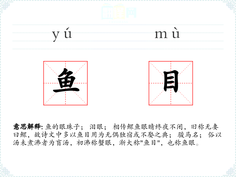 鱼目的分字解释