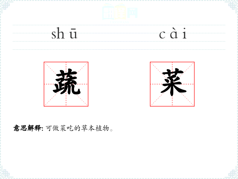 蔬菜的分字解释