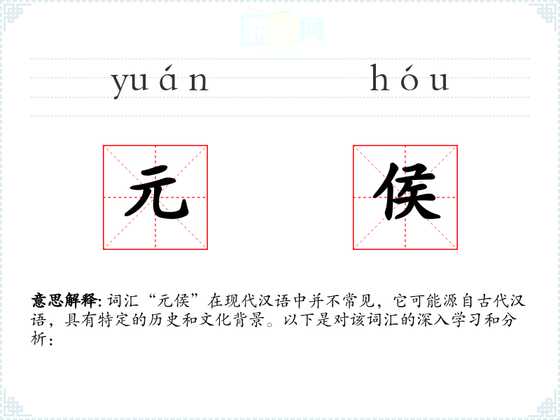 词汇“元侯”在现代汉语中并不常见,它可能源自古代汉语,具有特定的历史和文化背景。以下是对该词汇的深入学*和分析: