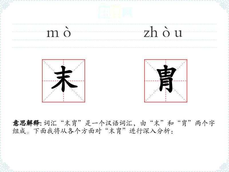 词汇“末胄”是一个汉语词汇,由“末”和“胄”两个字组成。下面我将从各个方面对“末胄”进行深入分析: