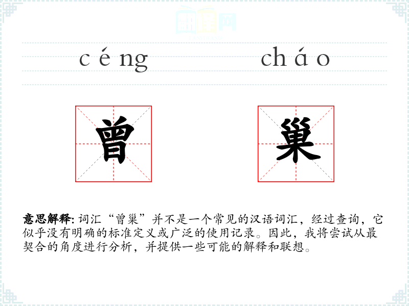 由于“曾巢”不是一个标准词汇,我们可以尝试从字面意思来解释: