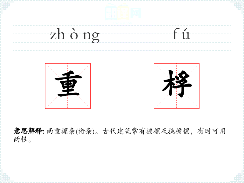 两重檩条(桁条)。古代建筑常有檐檩及挑檐檩,有时可用两根。