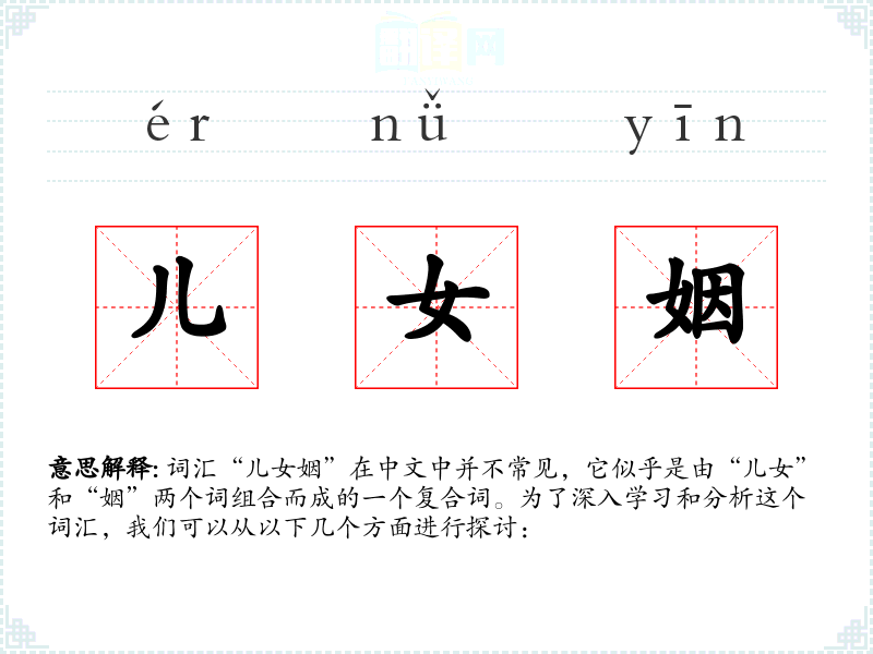 “儿女”和“姻”都是汉语中的基本词汇,它们的组合可能是为了特定语境下的表达需要而形成的。