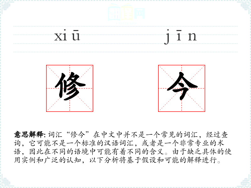 由于“修今”不是一个标准词汇,我们可以尝试从字面意思进行解释: