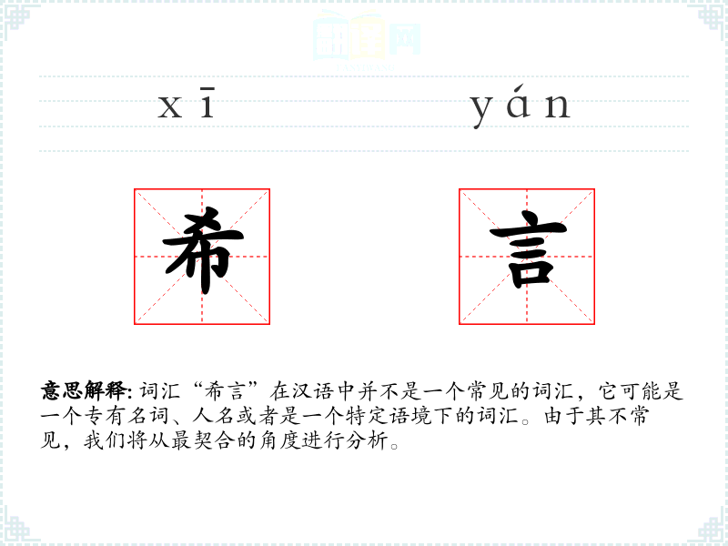 词汇“希言”在汉语中并不是一个常见的词汇,它可能是一个专有名词、人名或者是一个特定语境下的词汇。由于其不常见,我们将从最契合的角度进行分析。
