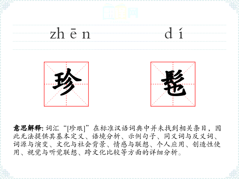 如果“[珍珢]”是一个特定领域或方言中的词汇,或者是一个新创造的词汇,那么可能需要具体的上下文信息才能进行深入分析。在没有足够信息的情况下,我们无法对这个词汇进行有效的学习和分析。