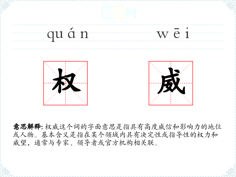 “权威”是一个在社会结构和人际交往中极为重要的词汇。它不仅代表了权力和威望,也反映了社会对知识和经验的尊重。在语言学习和表达中,理解和正确使用“权威”这个词,可以帮助我们更有效地沟通和理解社会关系。