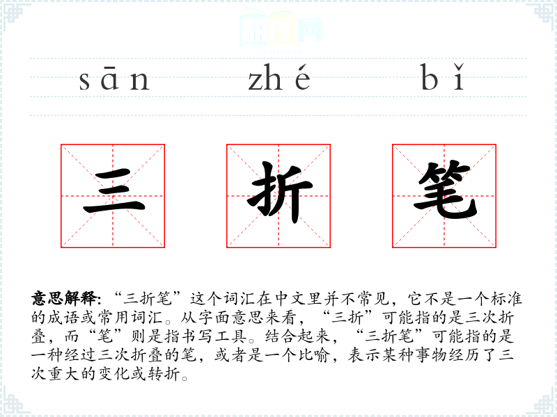 由于“三折笔”不是一个通用词汇,它在不同语言或文化中的对应词汇可能不存在,或者有不同的解释。