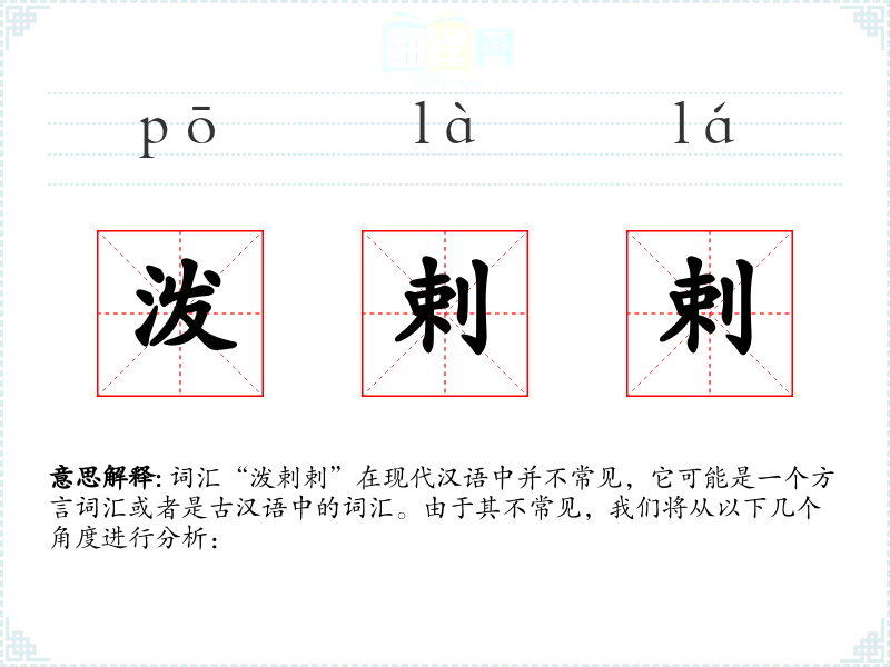 词汇“泼剌剌”在现代汉语中并不常见,它可能是一个方言词汇或者是古汉语中的词汇。由于其不常见,我们将从以下几个角度进行分析: