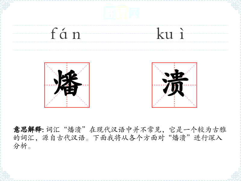 词汇“燔溃”在现代汉语中并不常见,它是一个较为古雅的词汇,源自古代汉语。下面我将从各个方面对“燔溃”进行深入分析。