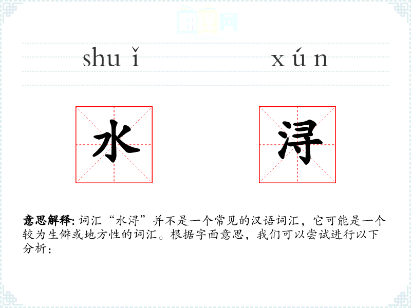 词汇“水浔”并不是一个常见的汉语词汇,它可能是一个较为生僻或地方性的词汇。根据字面意思,我们可以尝试进行以下分析:
