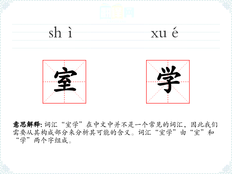 词汇“室学”在中文中并不是一个常见的词汇,因此我们需要从其构成部分来分析其可能的含义。词汇“室学”由“室”和“学”两个字组成。