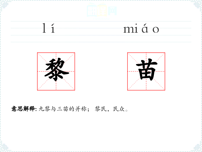 九黎与三苗的并称; 黎民,民众。
