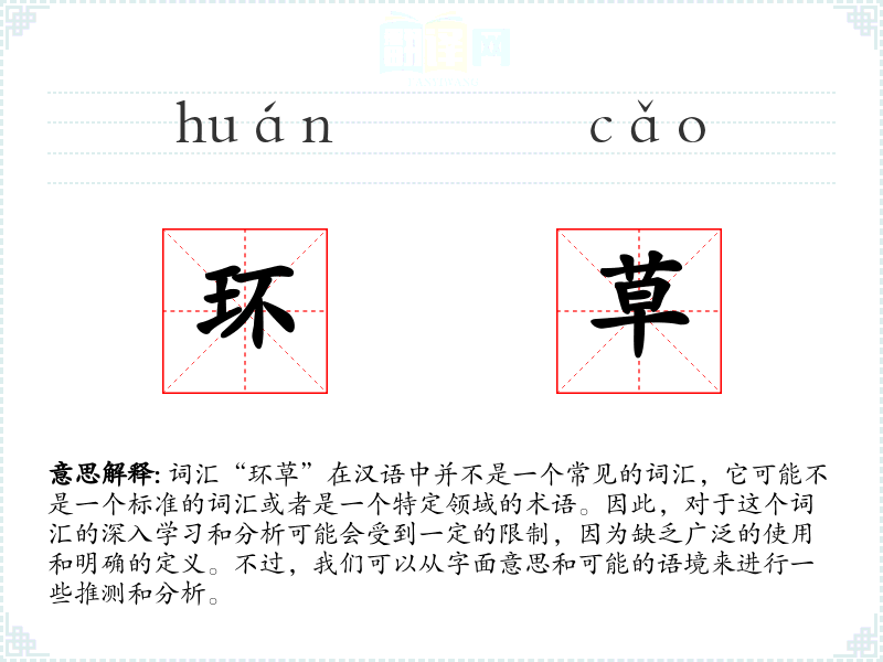 由于“环草”不是一个常见的词汇,它在不同语境下的使用可能非常有限。如果它出现在某个特定的文学作品或专业领域中,那么它的含义可能会根据那个特定语境来解释。