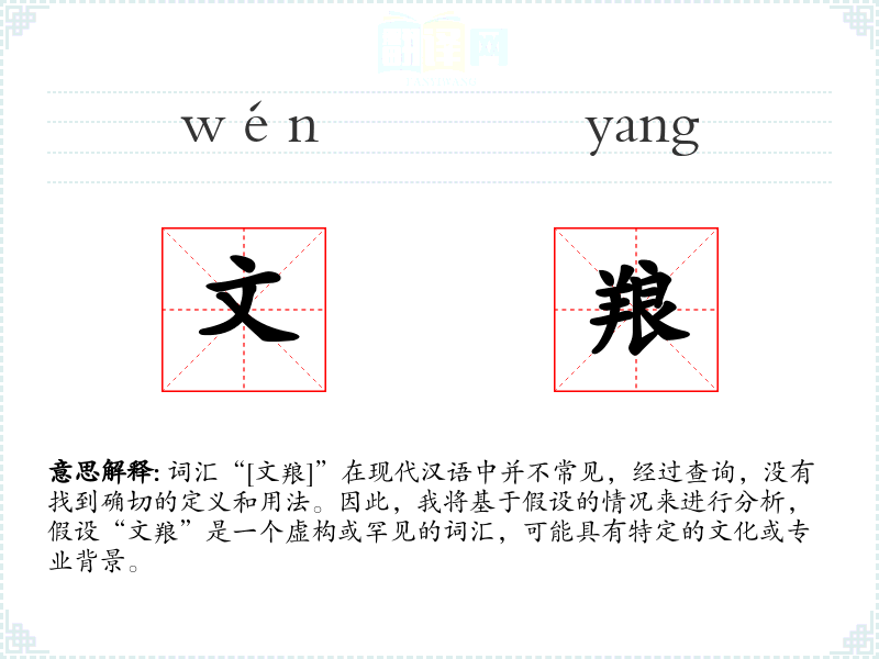 词汇“[文羪]”在现代汉语中并不常见,经过查询,没有找到确切的定义和用法。因此,我将基于假设的情况来进行分析,假设“文羪”是一个虚构或罕见的词汇,可能具有特定的文化或专业背景。