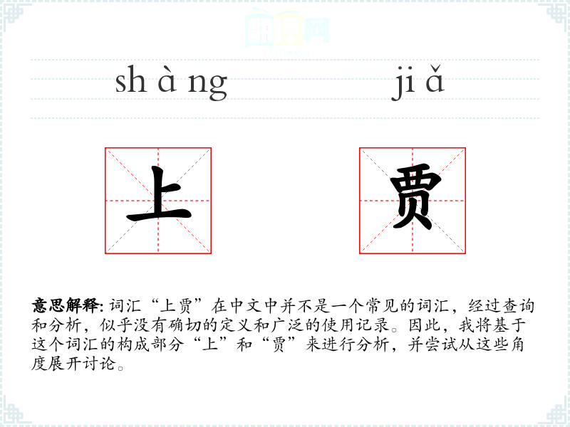 尽管“上贾”不是一个常用词汇,通过对其构成部分的分析,我们可以推测它在特定语境下可能的含义和用法。在语言学习和表达中,了解词汇的构成和可能的含义有助于丰富我们的词汇量和理解能力。