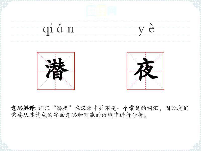 词汇“潜夜”在汉语中并不是一个常见的词汇,因此我们需要从其构成的字面意思和可能的语境中进行分析。