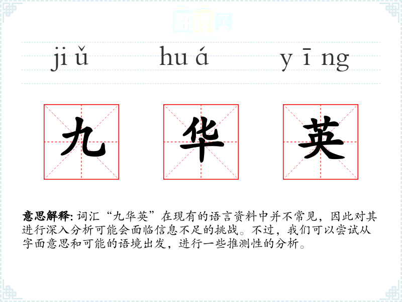 词汇“九华英”在现有的语言资料中并不常见,因此对其进行深入分析可能会面临信息不足的挑战。不过,我们可以尝试从字面意思和可能的语境出发,进行一些推测性的分析。