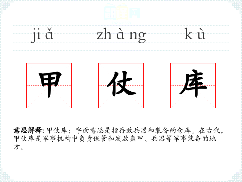 "甲仗库"的意思解释、甲仗库是什么意思由翻译网汉语词典查词提供。