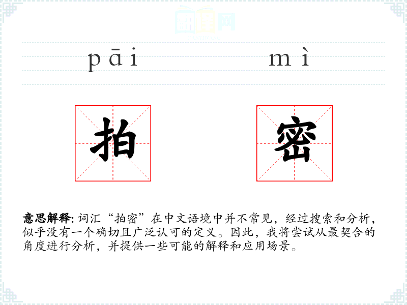 由于“拍密”不是一个标准词汇,我们可以尝试拆分理解: