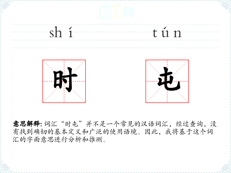 “时屯”字面意思可能是指“时间的积累”或“时间上的聚集”。其中,“时”通常指时间,“屯”有聚集、积累的含义。