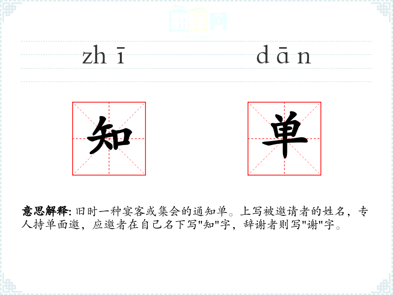 知单的分字解释
