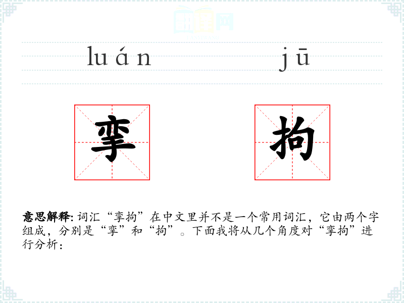 词汇“挛拘”在中文里并不是一个常用词汇,它由两个字组成,分别是“挛”和“拘”。下面我将从几个角度对“挛拘”进行分析:
