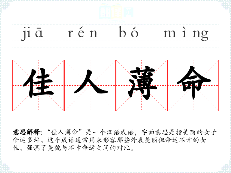佳人薄命的分字解释