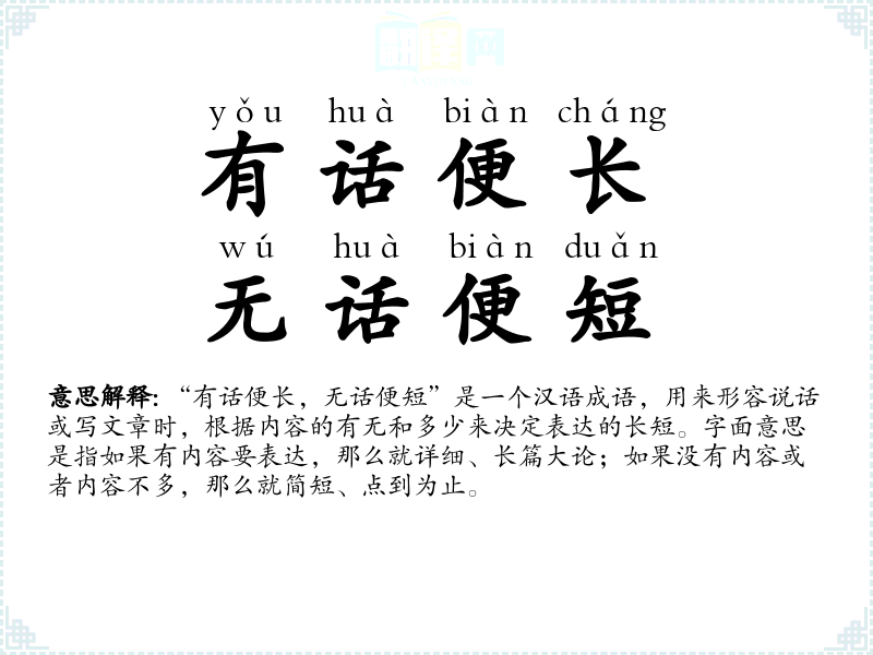 "有话便长,无话便短"的意思解释、有话便长,无话便短是什么意思由翻译网汉语词典查词提供。