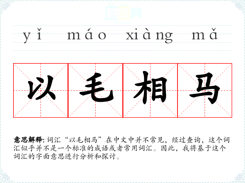 词汇“以毛相马”在中文中并不常见,经过查询,这个词汇似乎并不是一个标准的成语或者常用词汇。因此,我将基于这个词汇的字面意思进行分析和探讨。