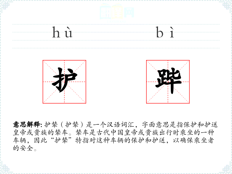 提到“护辇”,可能会联想到古代皇家的威严和庄重,以及对权力和安全的重视。这个词汇带有一种历史感和仪式感,让人感受到古代社会的复杂性和精致。