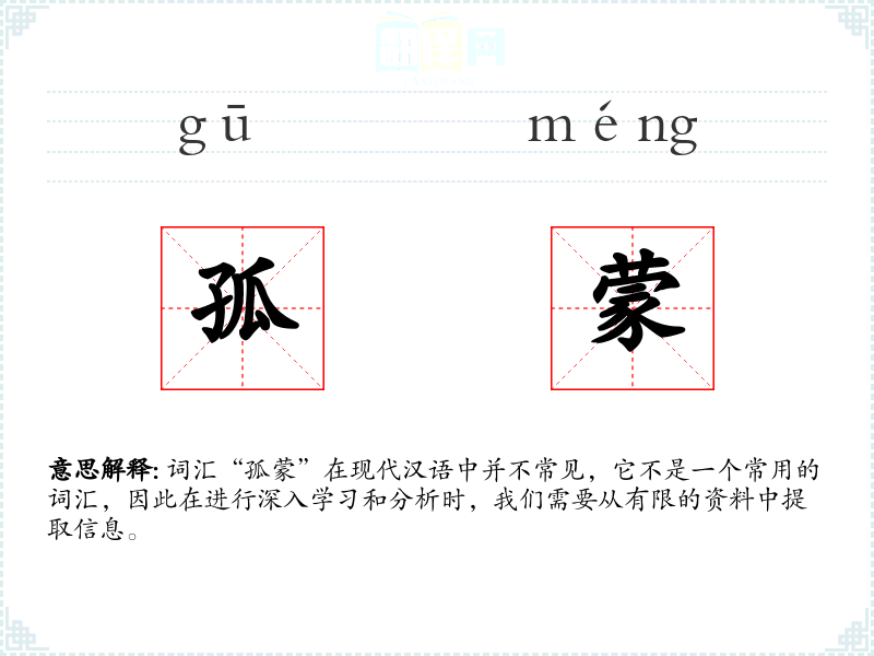 词汇“孤蒙”在现代汉语中并不常见,它不是一个常用的词汇,因此在进行深入学习和分析时,我们需要从有限的资料中提取信息。