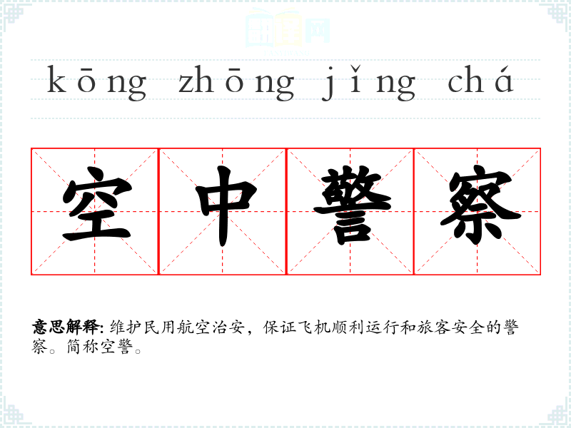 维护民用航空治安,保证飞机顺利运行和旅客安全的警察。简称空警。