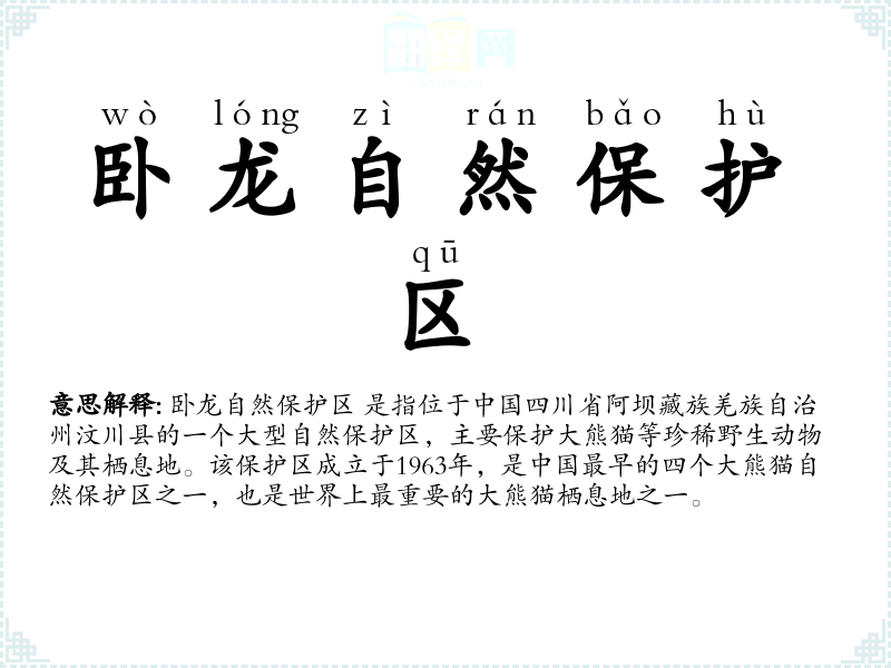 卧龙自然保护区的意思