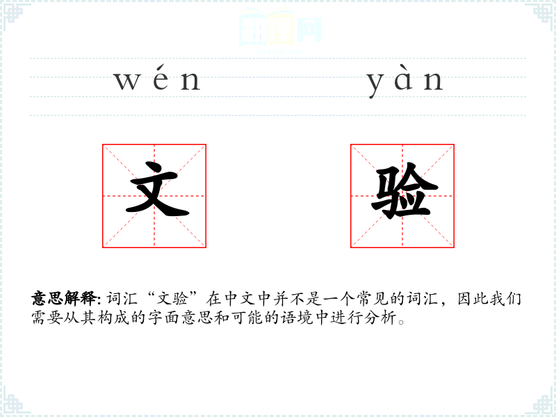 词汇“文验”在中文中并不是一个常见的词汇,因此我们需要从其构成的字面意思和可能的语境中进行分析。