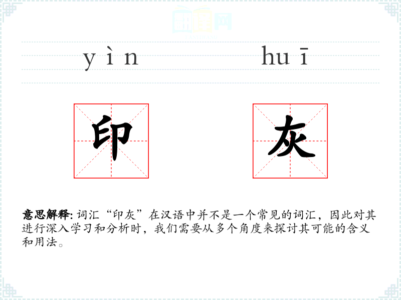 词汇“印灰”在汉语中并不是一个常见的词汇,因此对其进行深入学习和分析时,我们需要从多个角度来探讨其可能的含义和用法。
