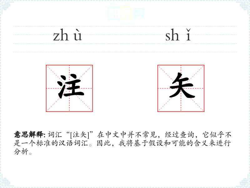 词汇“[注矢]”在中文中并不常见,经过查询,它似乎不是一个标准的汉语词汇。因此,我将基于假设和可能的含义来进行分析。