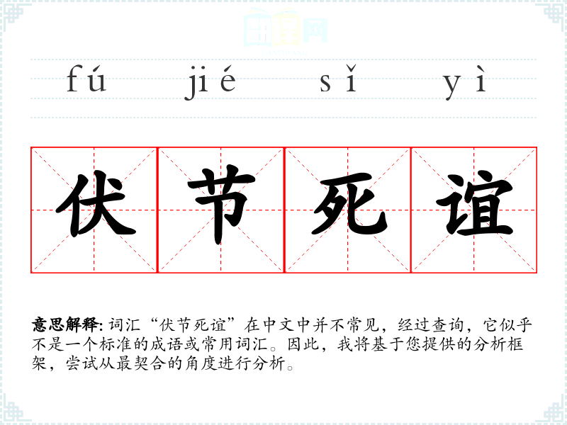 词汇“伏节死谊”在中文中并不常见,经过查询,它似乎不是一个标准的成语或常用词汇。因此,我将基于您提供的分析框架,尝试从最契合的角度进行分析。