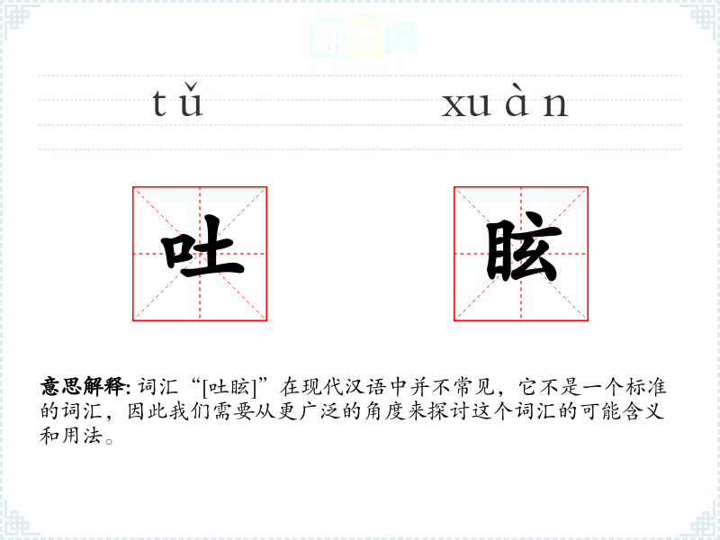 由于“[吐眩]”不是一个标准的汉语词汇,我们可以尝试从字面意思来解释: