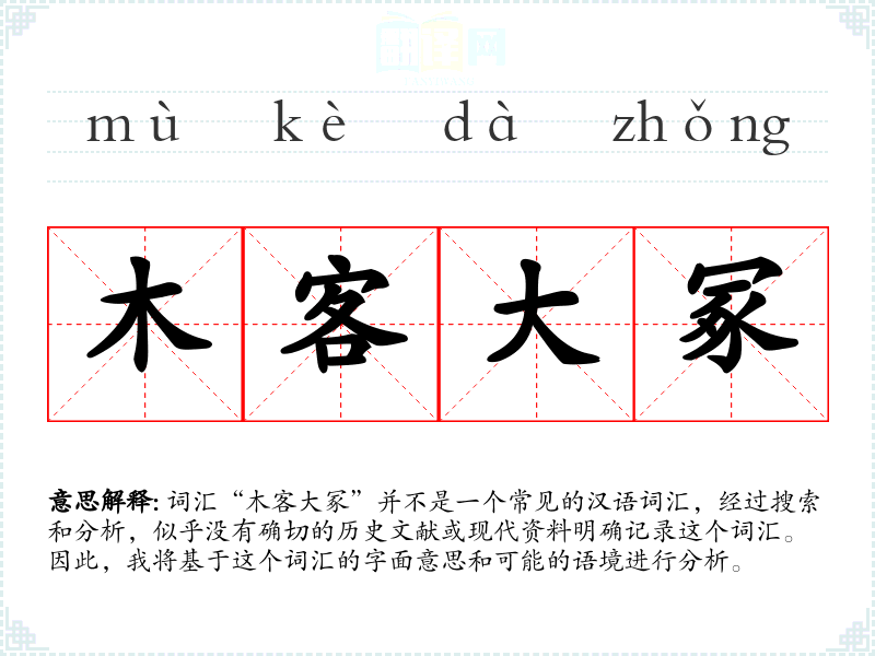 词汇“木客大冢”并不是一个常见的汉语词汇,经过搜索和分析,似乎没有确切的历史文献或现代资料明确记录这个词汇。因此,我将基于这个词汇的字面意思和可能的语境进行分析。
