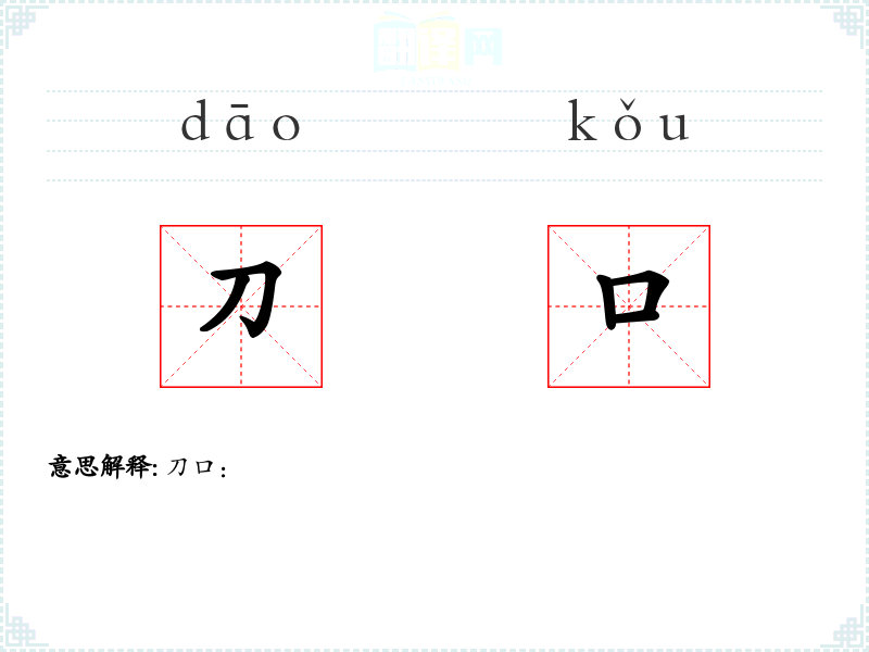 - 词源:“刀口”一词源于古代汉语,最初指刀的边缘。