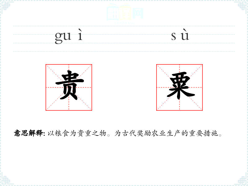 以粮食为贵重之物。为古代奖励农业生产的重要措施。
