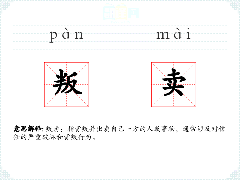 叛卖:指背叛并出卖自己一方的人或事物,通常涉及对信任的严重破坏和背叛行为。